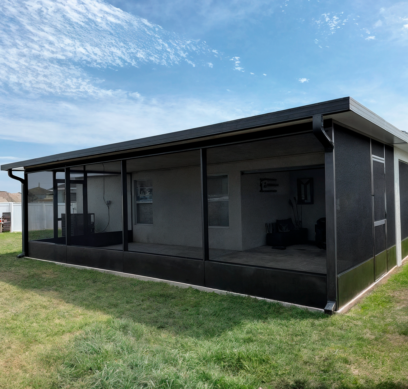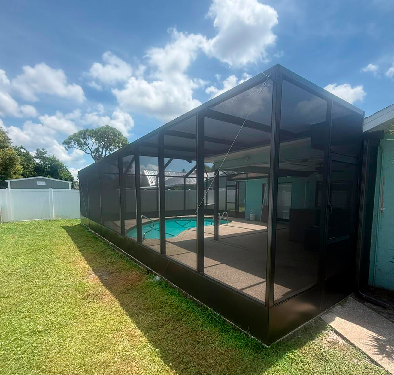 We design and install custom screen enclosures, lanais, and outdoor living spaces built to Florida code — durable, stylish, and made to enhance your home’s comfort and value.
